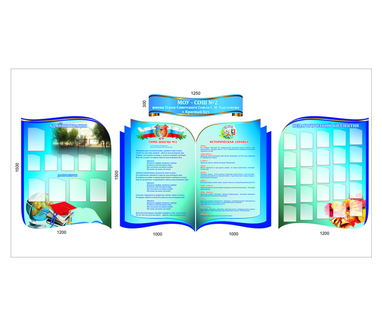 Производим информационные стенды для школ, детских садов и других учреждений. Мы изготавливаем стенды любого размера, формы, с карманами и без них. Наши специалисты разбираются в дизайне и помогут выбрать оптимальный вид стенда в зависимости от его назначения. Дизайн-макет информационного стенда может быть оформлен в соответствии с любыми пожеланиями заказчика.